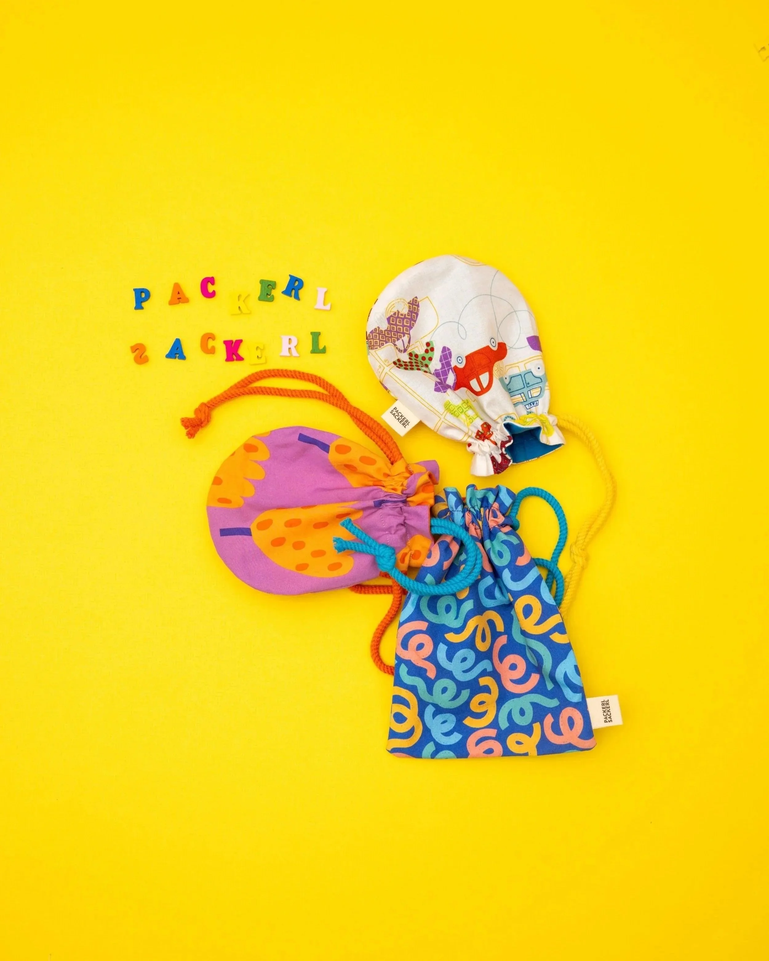 PACKERL SACKERL macht Geschenke nachhaltig und kreativ. Bunte Sackerl mit Tunnelzug aus liebevoll ausgewählten Second-Hand-Stoffen – gut für die Umwelt, schön für Geschenke. Ob für Geburtstage, Feste, kleine Überraschungen oder zum Aufbewahren und Ordnen von allerlei Alltagsdingen: Die Sackerl sind vielseitig, wiederverwendbar und voller Persönlichkeit. Nachhaltigkeit muss nicht langweilig sein – hier trifft Funktion auf Spaß!